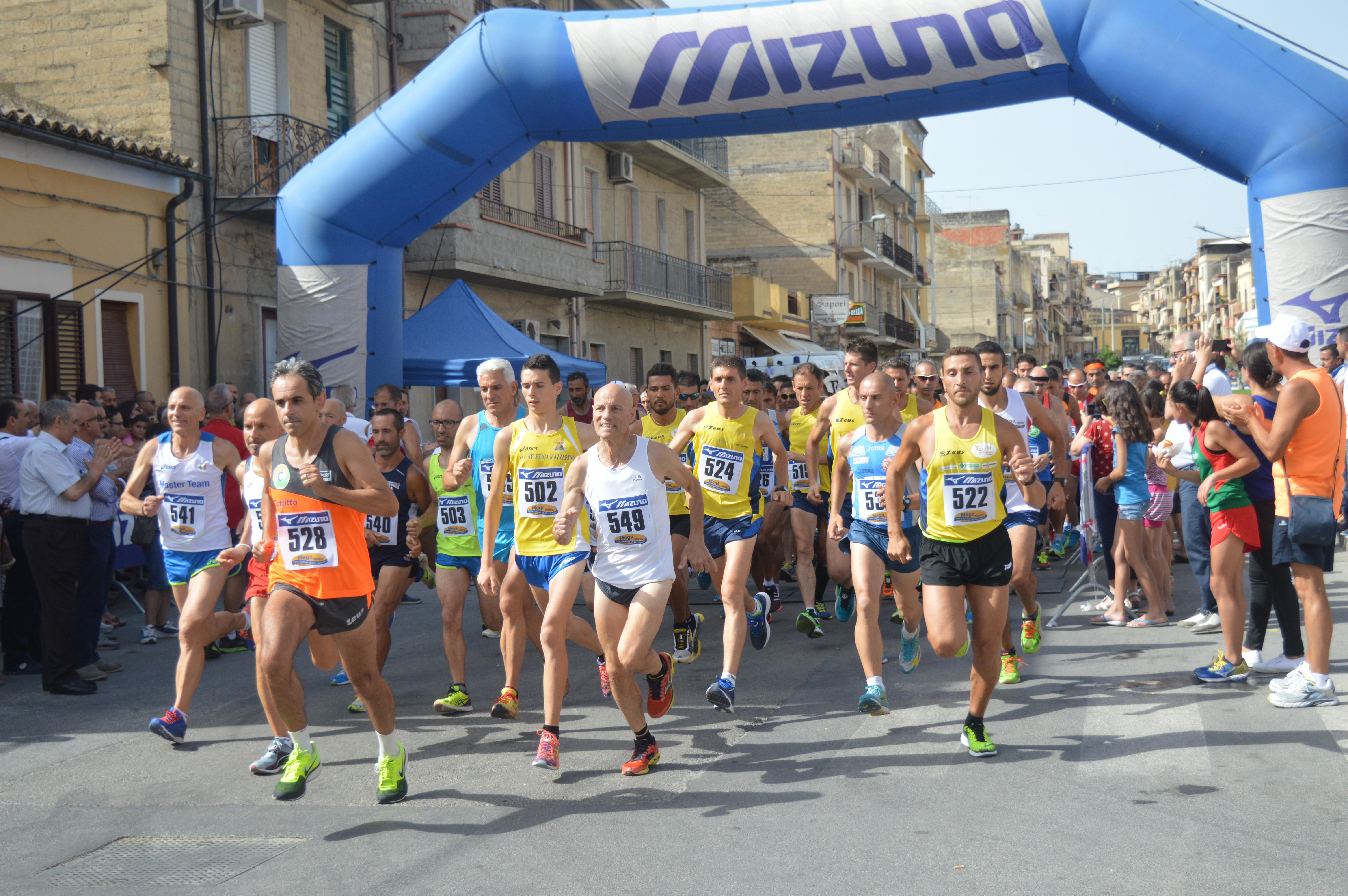 È la volta poi dei Senior, la maggior parte dei quali il futuro sportivo lo ha lasciato alle spalle; sono le 9e30, il termometro è salito ancora e lo speaker chiama allappello i master, uomini e donne. Mentre siamo già tutti accalcati nei pressi del gonfiabile, si tenta di formare la “griglia”; Marcellino informa quali siano i numeri di pettorale col diritto di accesso a questo spazio, ma la massa dei 330 podisti preme; viene calata dallalto una strisciolina di separazione ma senza alcun risultato. Saverio Mangione (Track club master CL) cerca di liberarsene tentando di strapparla, ma viene dissuaso da un altro podista. La separazione ha comunque vita brevissima e dopo qualche secondo cade “spontaneamente. A questo punto siamo tutti ben miscelati. Al sindaco, Francesco La Rosa, viene suggerita la formula di rito per dare il via alla gara e con questa formula magica pronunciata dal primo cittadino di Niscemi, tutti scattiamo in avanti, siamo in corsa! Il tratto iniziale è in ombra, alle 9 e mezza il sole è ancora basso e usufruiamo del fresco che ne deriva. Dopo 400 metri circa la strada si impenna ferocemente e dopo poco siamo sotto il sole quasi cocente, cè una leggera ondulazione e si arriva al primo dei tornanti di questo percorso che si svolge su ununica strada ed è quasi noioso. Il gruppo è ancora abbastanza compatto e la svolta è difficoltosa, si sgomita, ci si urta e la confusione delle 660 gambe in corsa è massima. Nel tratto di ritorno siamo in discesa ma sotto il sole. La velocità aumenta, siamo ancora al primo chilometro, freschi e baldanzosi. Cè un primo rifornimento dacqua ma rinvio lappuntamento al successivo. Cè il tornante che ci riporta sul rettilineo darrivo, è molto ampio e non ci sono difficoltà di sorta. Completiamo il primo giro passando sotto il gonfiabile e sopra i tappetini magici dei cronometristi della MySDAM. Io dopo avere affiancato e superato Ferraro Bruno (Atl. Scuola Lentini) molto più veloce di me in partenza, durante il primo giro, sto tallonando il solito Giuseppe Mazzeo (Podistica Messina). Di Giovanni Tavano (Marathon Club Taormina), leader della nostra categoria, non abbiamo notizie, al solito e scappato via senza neppure salutare. Affrontiamo la salita che già al secondo giro ci sembra avere una pendenza maggiore. Dopo il tornante getto un colpo docchio su Vilmo Luciani (A.S.D. Placeolum), del quale sento il fiato sul collo, stessa cosa fa Mazzeo, che però sembra controllare Luciani piuttosto che me. Siamo al rifornimento, tento di afferrare lacqua, ma un volontario inesperto piazzato davanti al tavolino è un poco dimpiccio e rimango a secco. Siamo al secondo passaggio dal via e inizia il terzo giro. Il sole si alza e lombra si va riducendo, la salita in compenso ci sembra sempre più ripida. Giuseppe sembra un poco rallentare landatura, recupero qualcosa su di lui. Vilmo al tornante successivo che segna metà gara è sempre lì, a pochi metri da me. Siamo in discesa, arrivo al rifornimento, questa volta non sbaglio la presa e possa farmi la microdoccia che desidero. Terzo passaggio dal gonfiabile, per restare allombra si corre tutto a destra, ma la salita ancora una volta è lì ad aspettarci. Al passaggio dalla mia “dolce metà” che scatta foto a ripetizione, non ho più forze nemmeno per un cenno di saluto. Sono a ridosso dellamico Giuseppe Mazzeo e dopo il tornante vedo Vilmo sul lato opposto, mi sembra che finalmente abbia perso qualche metro. Sono aggrappato con tutte le mie forze al podio, sento di poterlo tenere ben stretto. Al rifornimento prendo ancora acqua da fare scorrere dalla testa in giù sulla pelle calda e sudata. Mi doppia latleta in testa alla gara, è veloce come un cavallo. E lultimo mio passaggio dal traguardo, penso che il prossimo sarà Arrivo. Giuseppe è ancora lì poco distante da me, ma il suo finale al solito è in progressione e non sono in grado di seguire il suo passo. Luciani fortunatamente per me è ormai lontano. Taglio il traguardo regalando 19 a Giuseppe, mentre da alcuni minuti Giovanni Cavallo (Podistica Messina) ha vinto la gara fra gli uomini e Laura Speziale (Sport Nuovi Eventi Sicilia) lo ha fatto fra le donne.