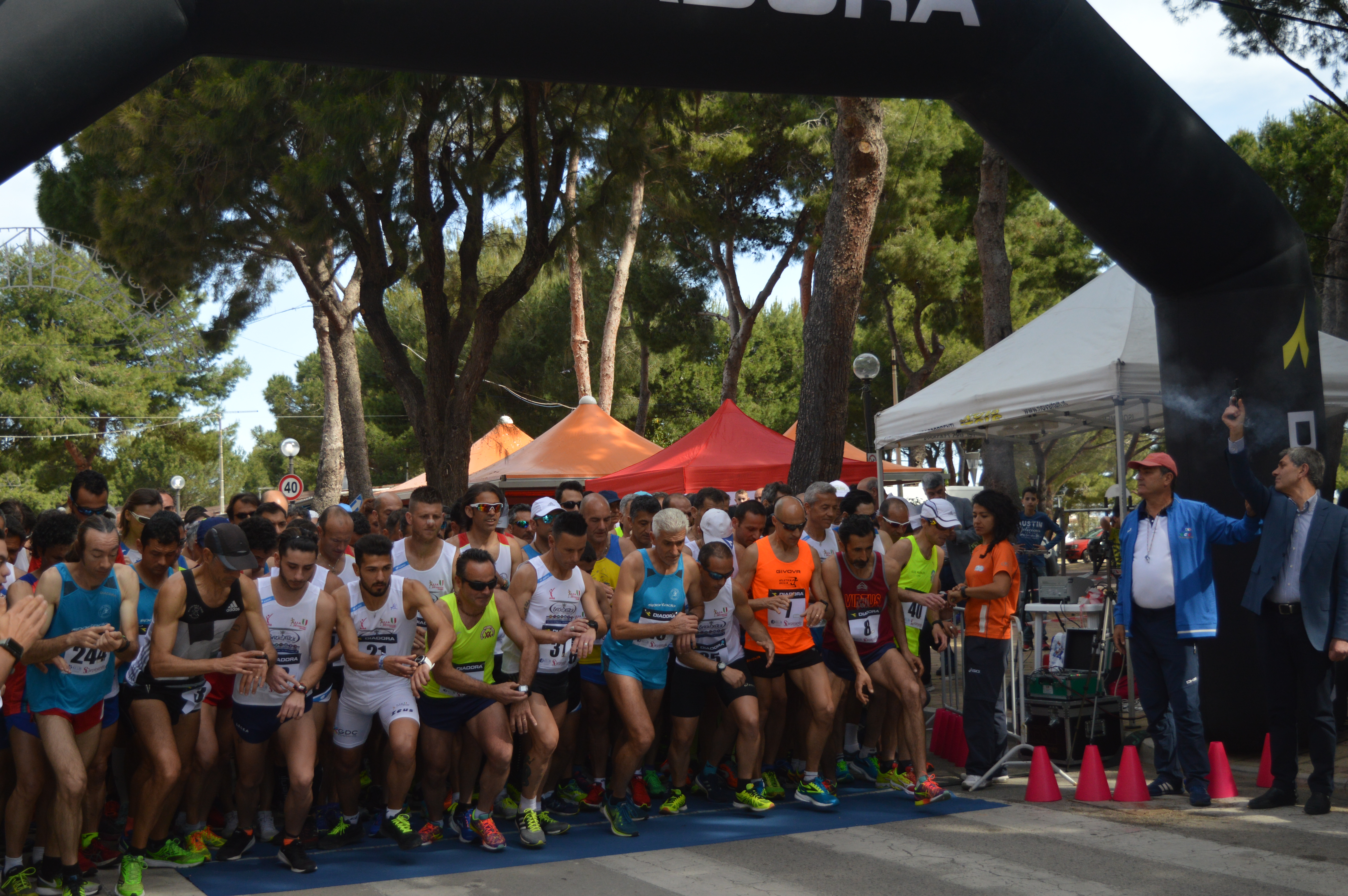 San Giorgio di Gioiosa Marea ore 10. All’ombra della pineta che costeggia il lungomare, 250 atleti provenienti dalle nove province siciliane sono schierati alla partenza del Trofeo Annarita Sidoti. Partenza unica per tutti gli atleti ma sconto del 25% per uomini over 75 e donne over 60 che percorreranno 3 dei 4 giri previsti per tutti gli altri: 7,5 km contro 10.