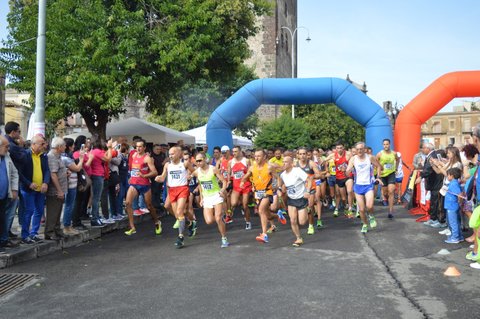 Non ci sono più impedimenti per il via e con un secco colpo di pistola si parte, la curva è talmente vicina che ancora nessuno è in piena velocità e forse è una fortuna, perché nel grande “intrecciarsi” delle 800 gambe in gara, nessuno si fa male. La massa dei concorrenti si riversa nella larghissima discesa per poi andare a stringere alla successiva svolta in via Carlo Marx, dove forse sono avvantaggiati gli atleti in maglietta “rossa”, chissà? Abbandoniamo la via Marx mentre inizia una salitella che con un’altra svolta ci fa imboccare la via Madonna delle Grazie, e qui la grazia per la strada in salita, la possono chiedere tutti, ma ancora è il 1° chilometro e tutti siamo ancora nel pieno delle energie. Il tracciato di gara ci conduce all’interno del Giardino della Vittoria. Io dopo avere affiancato e superato l’amico Ferraro Bruno (Atletica Lentini) sono sulla scia di Vilmo Luciani (ASD Placeolum) e Mario Scarinci (ASD Etna Running), due “clienti” pericolosi della mia categoria. Al solito, Giovanni Tavano (ASD Marathon Taormina), un Diesel da 2500cc, chissà dov’è. Nel Giardino della Vittoria, saliamo e scendiamo più volte, ci sono curve e controcurve tra belle piante ornamentali. Finalmente usciamo dal Giardino e siamo in vista della zona di arrivo. Affrontiamo il corso Garibaldi e mentre noi scendiamo, incrociamo la testa della corsa in risalita; sommando l’età dei tre atleti che conducono la gara, forse si raggiunge la mia età, beati loro! In fondo al corso c’è un belvedere con un panorama che non ho tempo d’ammirare. Con l’inversione a “U” finalmente siamo in vista del gonfiabile che indica la fine del primo quarto di corsa. Passiamo sotto il gonfiabile e la “storia si ripete”: la svolta, la discesa, Marx e Madonna delle Grazie, e la prima grazia la ottengo quando aggancio e supero Mario Scarinci che dopo la sua “partenza alla Garibaldina” lentamente ha ceduto. Dopo poco aggancio anche Vilmo e iniziamo a procedere di pari passo. Vilmo mi informa della nostra posizione, ma io non ho fiato neppure per rispondergli. Percorriamo insieme l’intero secondo giro. Siamo al terzo giro, prendo un poco di vantaggio nei suoi confronti. In corso Garibaldi Vilmo è di nuovo accanto a me, questa volta tace, risparmia il fiato anche lui. Al giro di boa Vilmo accelera, cerco di stargli dietro mentre alle nostre spalle vedo pericolosamente avvicinarsi anche Mauro Prosperi (ASD Virtus Acireale). Passiamo sotto il gonfiabile per la terza volta, la prossima sarà “arrivo”. Vilmo è sempre molto reattivo, mentre io sono in riserva, non mi aiuta né Marx (d’altronde non ho la maglietta rossa), né ottengo alcuna grazia (d’altronde non sono in alcun modo devoto). Entro nel Giardino della Vittoria, penso che Tavano a quest’ora sarà vicino alla sua di vittoria per la categoria dei sessantenni, mentre io scendo definitivamente dal podio quando Mauro, nel bel viale alberato del Giardino, senza strafare ma solo perché io ho finito la benzina, mi supera. La via Roma e il corso Garibaldi li percorro con molta fatica, un calvario masochistico, anzi un martirio volontario per il quale non è prevista la santificazione, pazienza. A 100 metri dall’arrivo “spunta” l’amico Vincenzo Lorefice, ritardatario alla partenza e anche all’arrivo, mentre io sono in compagnia di Angelo Meli da Niscemi che letteralmente mi trascina per mano all’arrivo e così Vincenzo resta indietro di un secondo.