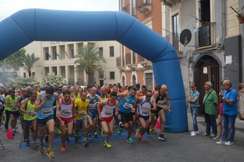 Alle 17 e 30 col benestare dei giudici e l’ok della Polizia Municipale si dà il via “alle danze”: 19 giovani “femminucce” rincorse da 32 “maschietti” over 60, con il contorno di 2 “allievi”, al colpo di pistola imboccano la stretta via Serravalle, ristretta ancor più dalle auto parcheggiate ai lati (compresa la mia..). Come è logico che sia, sono i due allievi a fare da “apripista”, Andrea Claudio Bucca (Atletica Virtus Acireale) e Matteo Triscali (Monti Rossi Nicolosi). Da un vicolo all’altro e finalmente usciamo “all’aperto” in piazza Cutelli dove l’attento Agostino mette in guardia le podiste e i podisti dal pericoloso e già citato gradino. Superiamo la piazza e costeggiamo la bella ed elegante Moschea della Misericordia. All’inseguimento dei giovanissimi di testa c’è la coppia un poco meno giovane (124 anni in due), Lo Faro-Novello, rispettivamente Fortitudo Catania e UNVS Fontanarosa; io sono sulla loro scia in compagnia della favorita al femminile della gara, Patrizia Strazzeri (Atl. Fortitudo Catania). Ancora un paio di cambi di direzione ed entro nella piazza Duca di Genova mentre vedo gli allievi che ne stanno uscendo. La “chicane” di via Porta di Ferro ci riporta verso la conclusione del primo giro, Renato allunga mentre Patrizia ha superato Novello e io lo affianco. È il secondo giro, gli allievi allungano il passo mentre Novello supera Patrizia e “agguanta” nuovamente Lo Faro. Siamo al terzo giro, inizio a perdere qualcosa dalla coppia di testa over 60 mentre Patrizia sembra “aspettare” la sua avversaria più pericolosa, Adalgisa Polopoli (ASD Monti Rossi Nicolosi). Incrociamo la via San Gaetano e percorriamo le vie San Lorenzo e San Tommaso. In mezzo a tanta “santità” spero in un “miracolo” che mi dia le energie necessarie ad agganciare la coppia di testa, ma al 4° giro perdo ancora qualcosa, tallonato ancora a breve distanza da Patrizia. Anche Matteo Triscali che vedo a distanza mi sembra abbia perso terreno da Andrea. Il quinto giro è quello decisivo: Andrea Bucca è ormai solitario battistrada (non lo vedo più..), la Strazzeri che è al mio fianco ha staccato definitivamente Adalgisa, mentre Novello, forse vittima di una condotta di gara al di sopra della sua “portata”, abbandona. L’ultimo giro è senza storia, Andrea Bucca è imprendibile e si aggiudica la batteria, ma lo è anche Renato Lo Faro che supera addirittura Matteo Triscali, mentre Patrizia Strazzeri è la vincitrice al femminile del “Corri alla Civita” con netto distacco su Adalgisa Polopoli. A uno a uno tutti giungono al traguardo fino al “leader alla rovescia” della batteria, Giuseppe Ventura della Fiamma San Gregorio che “chiude” con il tempo di 42’14”.