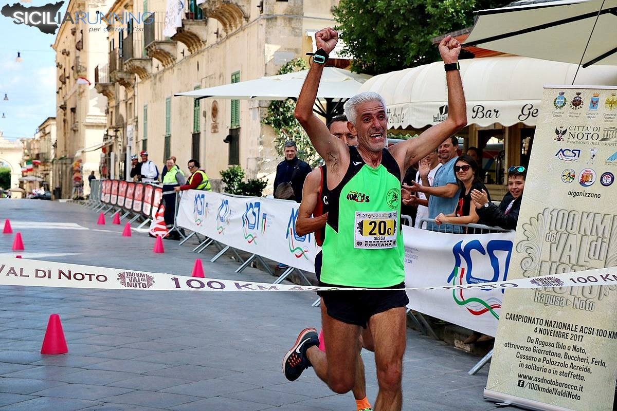 Novanta gli atleti che hanno iniziato la 100 individuale, 73 quelli che l’hanno portata a termine, tra questi il 77enne Edoardo Vaghetto della Polisportiva Atletica Bagheria già campione italiano di categoria nella specialità. Primo netino al traguardo il portacolori dell’Atletica Noto Giuseppe Barrotta(9h48’37 e quinto assoluto), mentre il pugliese Massimo Faleoha timbrato la sua 490a maratona.