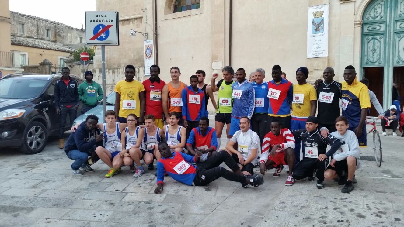 Nel Pomeriggio di sabato 5 Dicembre è andata in scena la 6^ Edizione del Trofeo Maria SS.Immacolata di podismo, il Memorial Giovanni Donzella, dedicato ad un giovane sportivo del luogo affetto da distrofia muscolare, deceduto nel 2008, e sulla distanza dei 5000 metri si sono dati battaglia una trentina di podisti nella batteria Assoluti/Amatori, su un suggestivo ed impegnativo tracciato di 835 metri che gli atleti han ripetuto per 6 volte. Dominio degli Atleti della Libertas Scicli di coach Franco Ruscica e vittoria di Antonio Speranza col crono di 17’34”, davanti ai compagni di squadra Alberto Amenta e Antonio Mansueto che han completato il podio coi tempi di 17’58” e 18’31”. Ritmo forte sin dalle prime tornate, nel nervoso tracciato ricavato tra la Piazza Chiaramonte ed i vicoli adiacenti il Giardino Ibleo, che han costretto al ritiro uno dei favoriti, l’altro sciclitano Vincenzo Lorefice portacolori del GS Corso Italia di Pisa, che per problemi muscolari ha gettato la spugna al 4° giro, quando era alla testa del quartetto al comando della gara. Al 4° posto giungeva Filippo Bertone della No al doping di Ibla (1° tra gli Over 50) col crono di 20’01”, davanti a Tonino Spatola della Barocco Running Ragusa (2°Over 50) in 20’47”, 6° giungeva Corrado Guerrieri della Placeolum di Palazzolo Acreide col crono di 21’52”. Tra le donne vittoria in solitaria per l’Allieva Flavia Belluardo, la talentuosa pupilla della Libertas Scicli di Franco Ruscica, che concludeva un buon test sui 5000 metri in 22’07”, mentre tra gli Over 50 il podio dopo Bertone e Spatola, veniva completato da Mimmo Causarano della No al doping Ibla col crono di 26’28”, davanti al compagno di squadra Renato Betto giunto col tempo di 28’08”. La batteria Amatori è stata anche molto partecipata dai ragazzi ospiti dell’adiacente Centro di Prima Accoglienza di Piazza Chiaramonte che gioiosamente in pieno Spirito Decoubertiano, si son cimentati nell’iniziativa sportiva di corsa podistica che si svolgeva dinanzi il loro Centro. Il migliore è stato Mustafà Traore del Mali, 15° Assoluto in 24’22”, su Mahamadou Saw del Senegal (18°) in 24’53”, quindi Happy Yekoabi (Nigeria), (19°) in 25”05″, poi via-via Victor Viksenze (Nigeria) in 25’53”, Alì Adam del Sudan in 26’04”, Mohammed Kantè (Senegal) in 28’07”, e a seguire tutti gli altri.