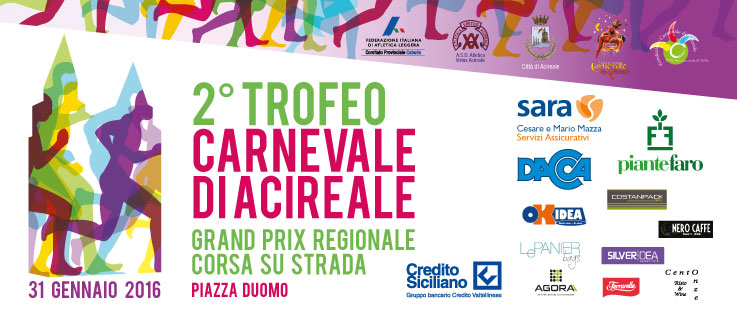 Tutto pronto ad Acireale per l’ appuntamento con il podismo! Domenica 31 Gennaio, sulle stesse strade in cui saranno in esposizione i carri allegorici, si svolgerà il 2° Trofeo “Carnevale di Acireale”, valido come Ia prova del 22° Gran Prix Regionale di corsa Senior – Master.