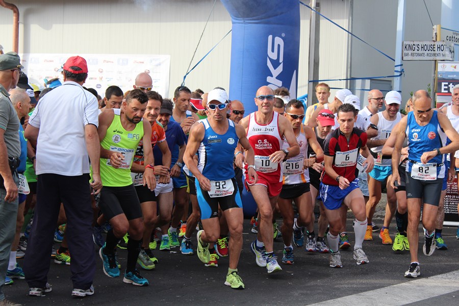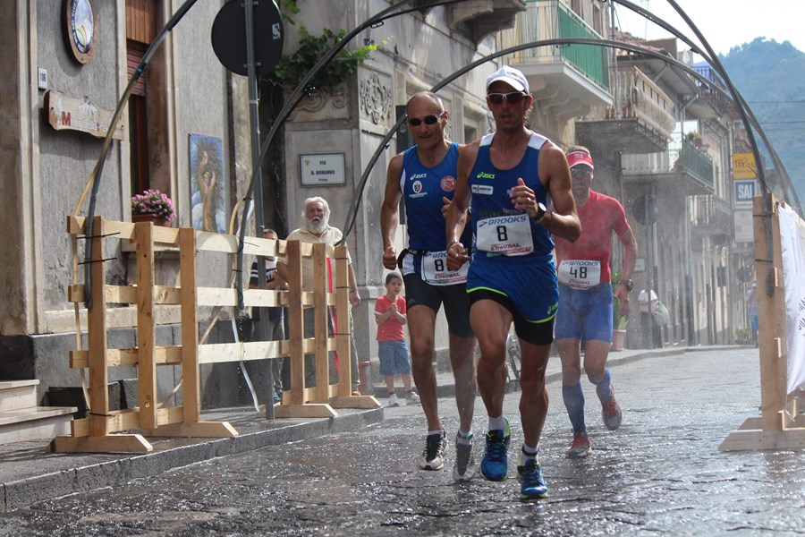 IMG_8303 (Copia)Va a Massimo Buccafusca la nona edizione della Supermaratona dell’Etna, prima sotto l’organizzazione dell’Etna Trail ASD che ha ricevuto il testimone dalla friulana US Tarvisio di Mario Tosi. Buccafusca tesserato per il Marathon Monreale, ha conquistato il traguardo posto presso l’Osservatorio Vulcanologico a 2.800 metri, dopo 43 km di continua e inesorabile ascesa cominciata dalla spiaggia di Marina Cottone. Per lui il tempo di 4h02’56. Una corsa che ha visto per larghi tratti protagonista Vito Massimo  Catania, che ha dovuto fare i conti con un Buccafusca ancora con il dente avvelenato per il recente ritiro al Passatore. La svolta della gara è arrivata intorno al 36° chilometro, quando la competizione in pratica è entrata nel vivo. Catania ha dovuto subire anche il ritorno di Antonino Recupero presidente   dell’Atletica Sant’Anastasia, a lui una meritatissima piazza d’onore (4h10’28). Gradino del podio più basso per l’atleta dell’Amatori Regalbuto (4h11’46). “Percorso duro e spettacolare – le prime parole di Buccafusca subito dopo il traguardo – non di certo adatto a me, ma oggi è andata bene al contrario di un paio di settimane fa (Passatore n.d.r.). Ho capito  che avrei vinto la gara – ha chiuso Buccafusca – quando ho raggiunto e superato un Catania in lieve difficoltà”, da quel momento in poi ho pensato solo a raggiungere il traguardo”. Tra le donne bissa il successo ottenuto nel 2012, Lara La Pera tesserata per Fiamma Rossa Palermo. IMG_8110 (Copia)La Pera, reduce dall’Ultra Trail di Annecy, ha fermato il cronometro a  5h02’08 ma soprattutto ha vinto nettamente confermando il suo ottimo stato di forma.  Seconda piazza per l’ottima Manuela Di Stefano (Fiamma San Gregorio) in 5h17’07, terzo posto per Graziella Bonanno (Podistica Messina) che ha patito oltremodo un avvio troppo brioso, chiudendo in 5h23’52.  Gara”pesante” con un caldo umido che ha accompagnato gli atleti per buona parte del percorso, solo un paio di schizzi di pioggia in quota; impareggiabile il panorama che ha offerto l’Etna con un panorama mozzafiato e il nero della lava illuminato dalle enormi chiazze di neve e ghiaccio ancora presenti.
