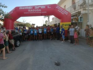 Ai nastri di partenza si sono dati appuntamento più di 200 podisti, la prima batteria alle 18,00, lo start, un gruppo folto di camminatori si sono cimentati anch’ essi per godersi uno scenario unico, alle 18,30, la gara podistica, dandosi subito battaglia dopo appena i primi km si posiziona davanti   Taranto  Enzo della Asd no al doping societa organizzatrice  che conclude alla fine il tracciato circa 11 km in 40 minuti e 21 secondi, seconda piazza per Blundo Giuseppe Asd no al doping dopo appena 10 secondi chiude il podio maschile Massimo Canzonieri Asd Padua Ragusa.